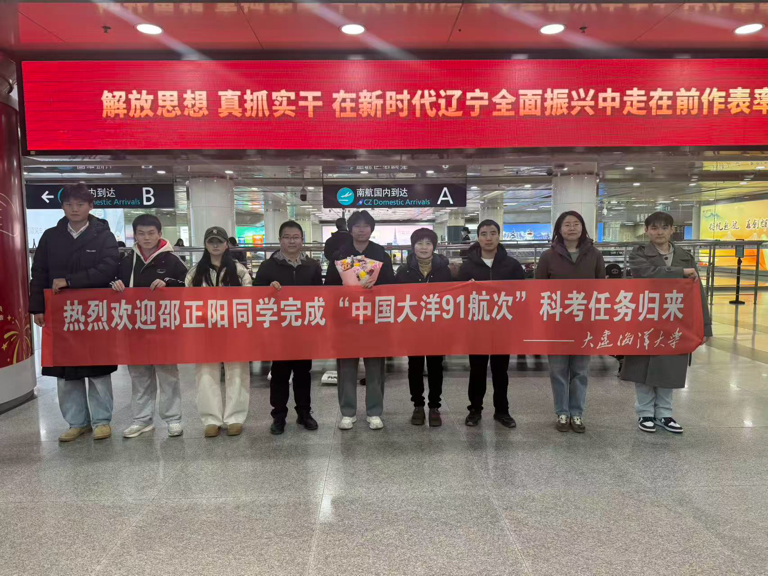 3月7日,我院2024级海洋科学专业研究生邵正阳圆满完成“中国大洋91航次”科考任务,顺利返校。学院党委书记谭利娟、副院长杨军、海洋技术系副主任富砚昭、史飞老师及同学赴机场迎接,欢迎科考队员凯旋。